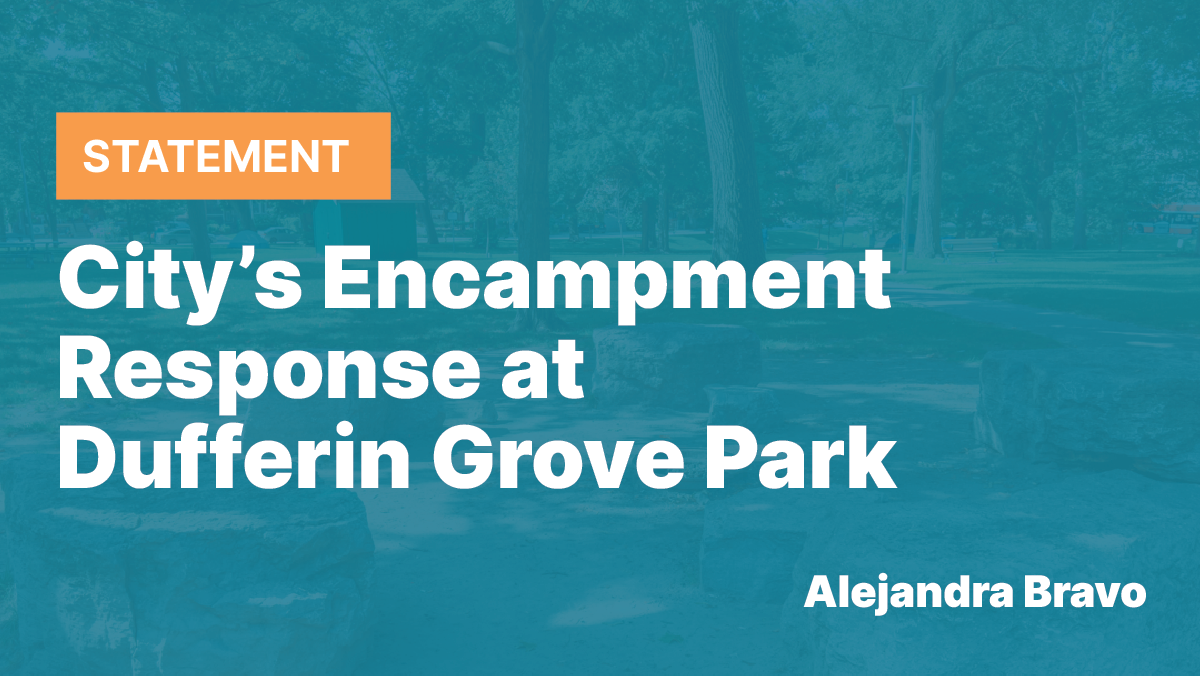 An update from Councillor Alejandra Bravo on the City of Toronto's response to the encampment at Dufferin Grove Park.